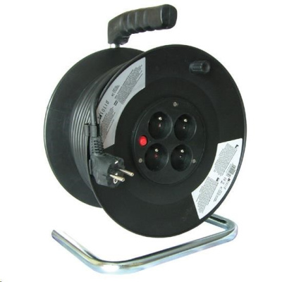 Solight prodlužovací přívod na bubnu, 4 zásuvky, 50m, černý kabel, 3x 1,5mm2