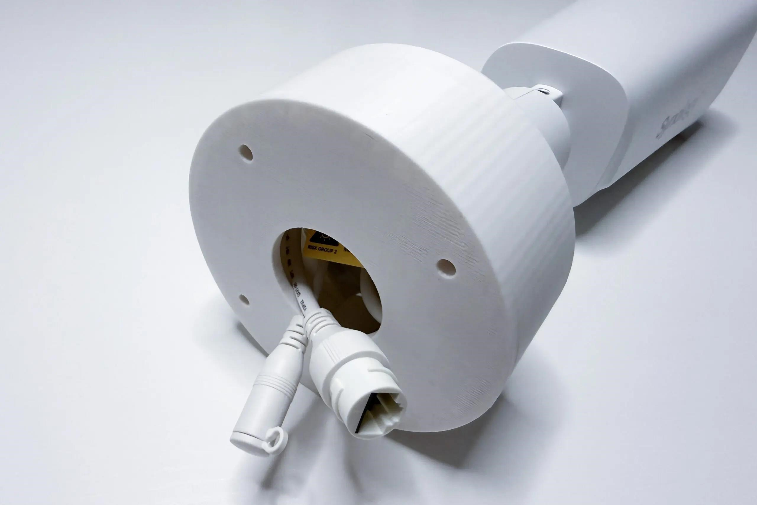 Plastový držák je určený pro uchycení kamery Synology BC800Z na stěnu nebo strop a to pomocí tří šroubů. Držák je vyroben z PETG materiálu na 3D tiskárně, má bílou barvu.