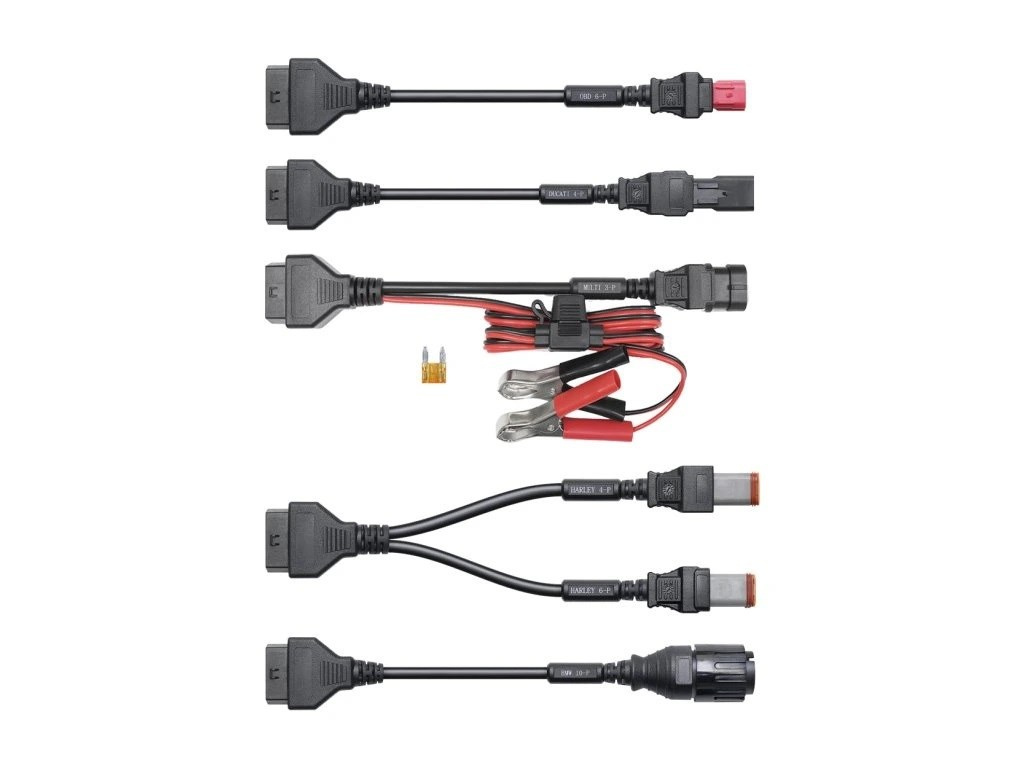 Kabelová sada je navržena pro spolehlivý přenos dat mezi motocyklem a diagnostickým zařízením, což vám usnadní provádění diagnostiky, zjištění závad a optimalizaci výkonu. Tato sada obsahuje značky BMW, Harley, Ducati, Kawasaki, Honda, Yamaha, Suzuki.