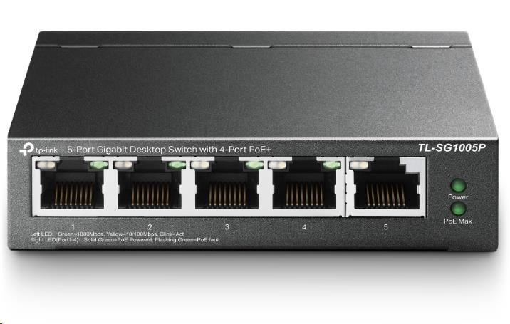 TP-Link switch TL-SG1005P (5xGbE, 4xPoE+, 65W, fanless)