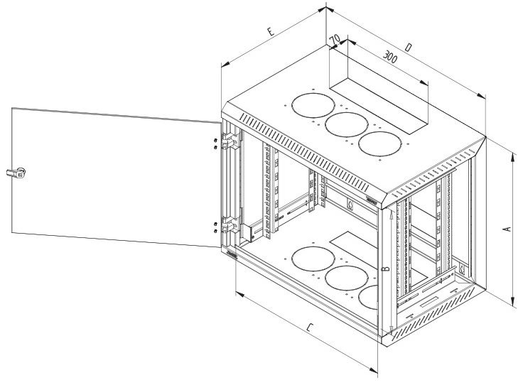 Výška rozvaděče (U) / výška celková:12U /635mm; Šířka rozvaděče (mm):600; Hloubka rozvaděče (mm):500; Typ datového rozvaděče:Nástěnné 19".