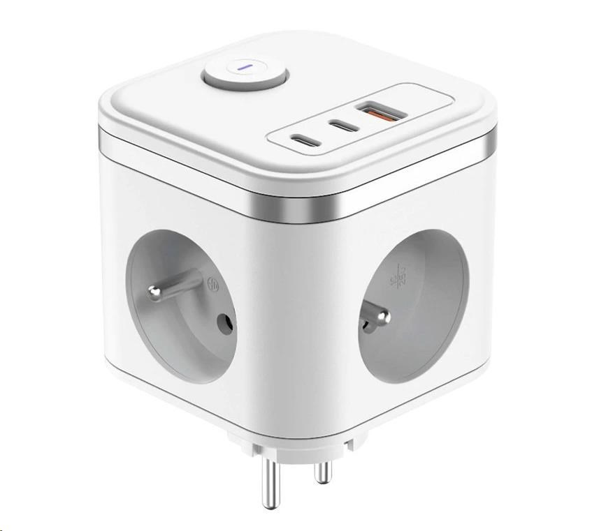 Viking síťový adaptér Y33, 3x 230 V, 1x USB-A, 2x USB-C, tlačítko ON/OFF, bílá