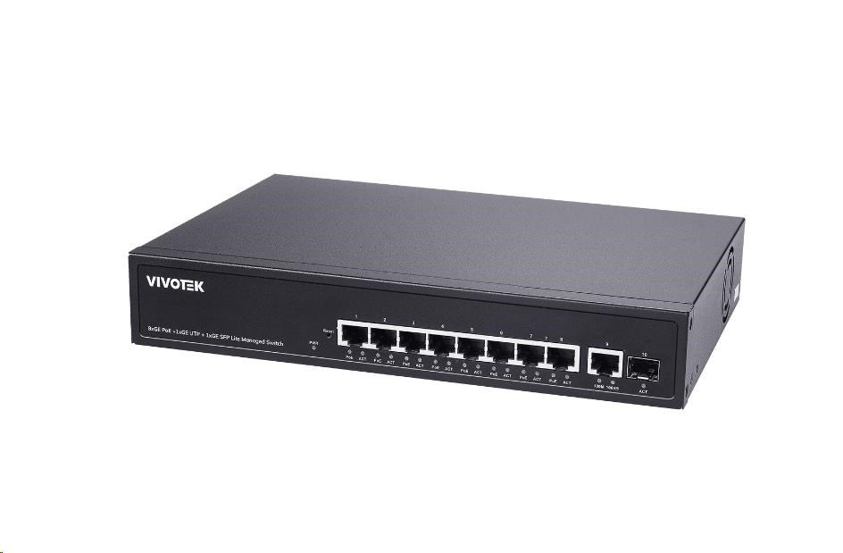 Vivotek PoE switch AW-GEL-105A-110, 8xGE PoE(802.3af/at/bt, PoE budget 110W), 1xGbE RJ-45, 1xSFP 100M/1G slot