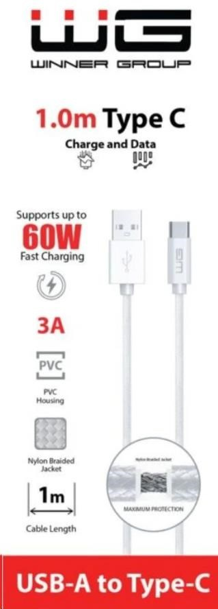 WG Datový kabel Type C-USB-A/1m/nylon braided/white