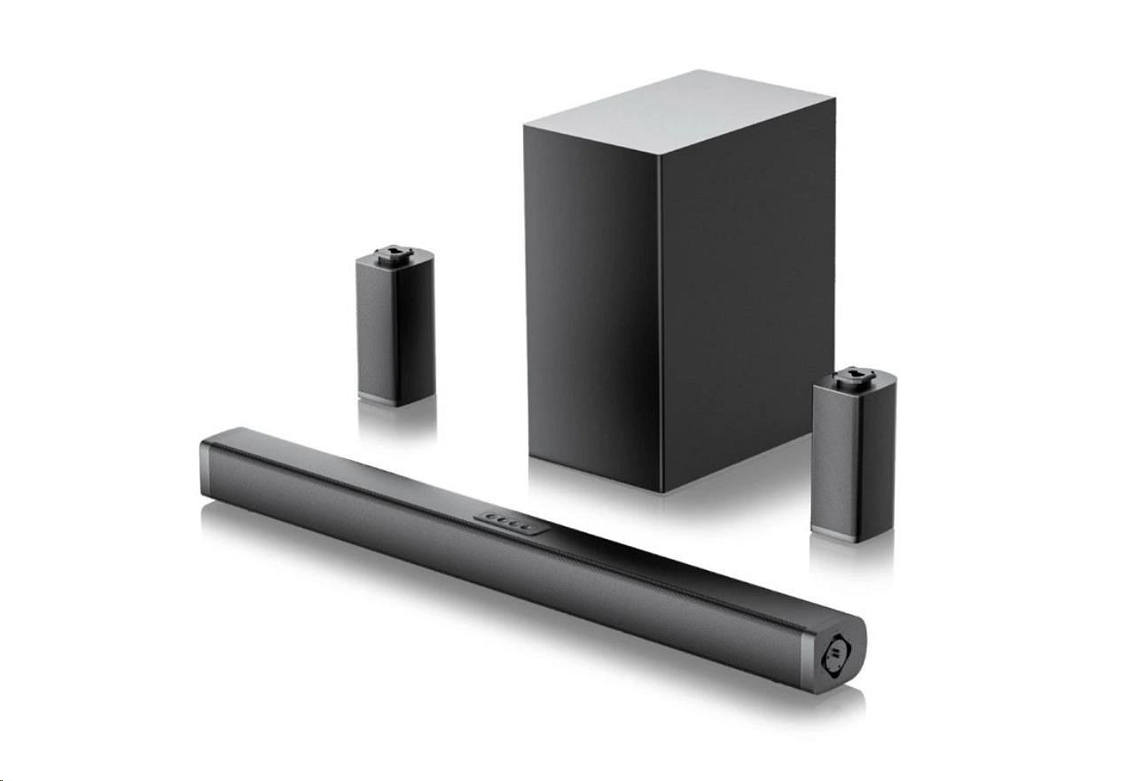 Specifikace sestavy:Soundbar; Výkon sestavy RMS (ve W):100; Rozhraní:3.5mm jack, Bluetooth, HDMI, Optické.